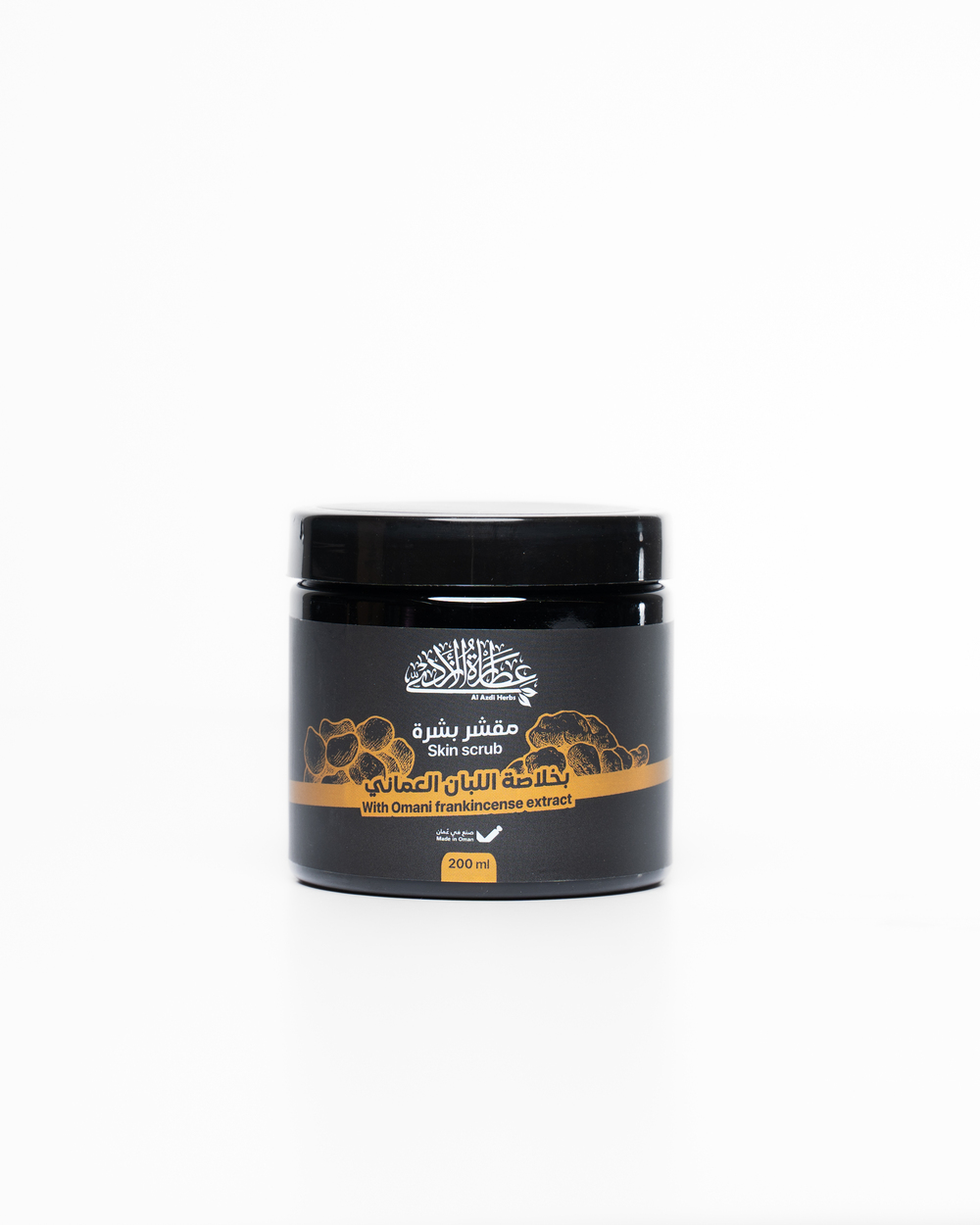A luxurious scrub enriched with natural Omani frankincense extract, known for its soothing and skin-renewing properties, along with fine exfoliating particles that deeply cleanse the skin without causing irritation.